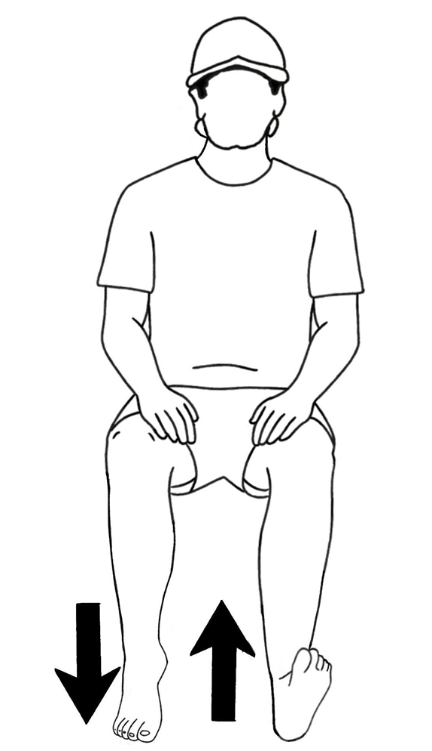 双脚跟踏地,用力、缓慢地将脚尖向上勾至极限,感受小腿肚被拉伸;再将脚尖用力下踩至极限,感受小腿前侧的紧绷。如此重复。这个动作能像泵一样,通过肌肉收缩挤压深部静脉,强力促进下肢血液回流。