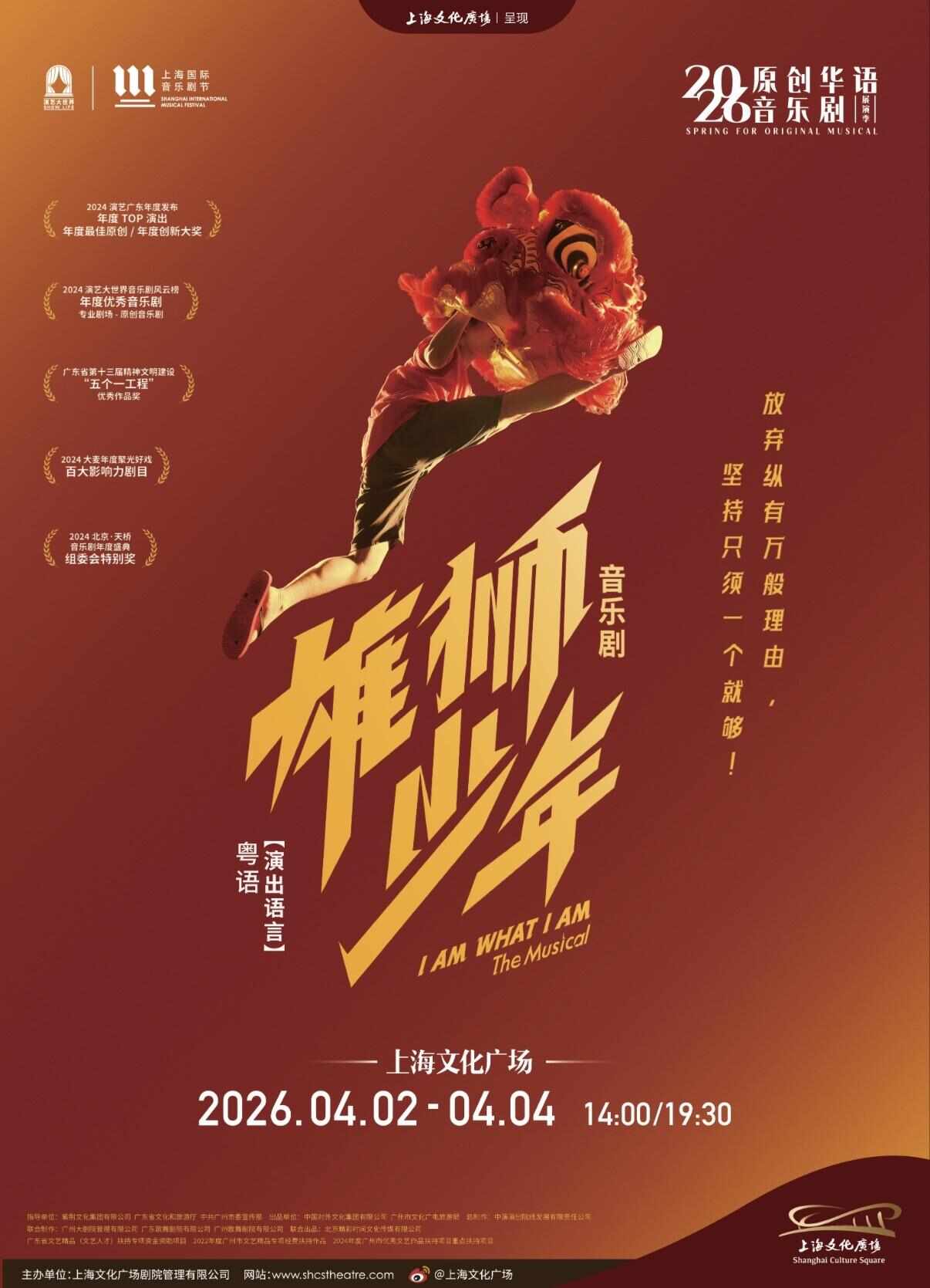 屡获殊荣的粤语音乐剧《雄狮少年》改编自现象级同名动画电影IP,汇聚内地与港澳优秀艺术家打造,特邀郑君炽、冯志佑、刘兆康等实力演员携手呈现,聚焦千年醒狮非遗项目与岭南风土人情,首度抵沪与上海观众见面,谱写追梦热血。